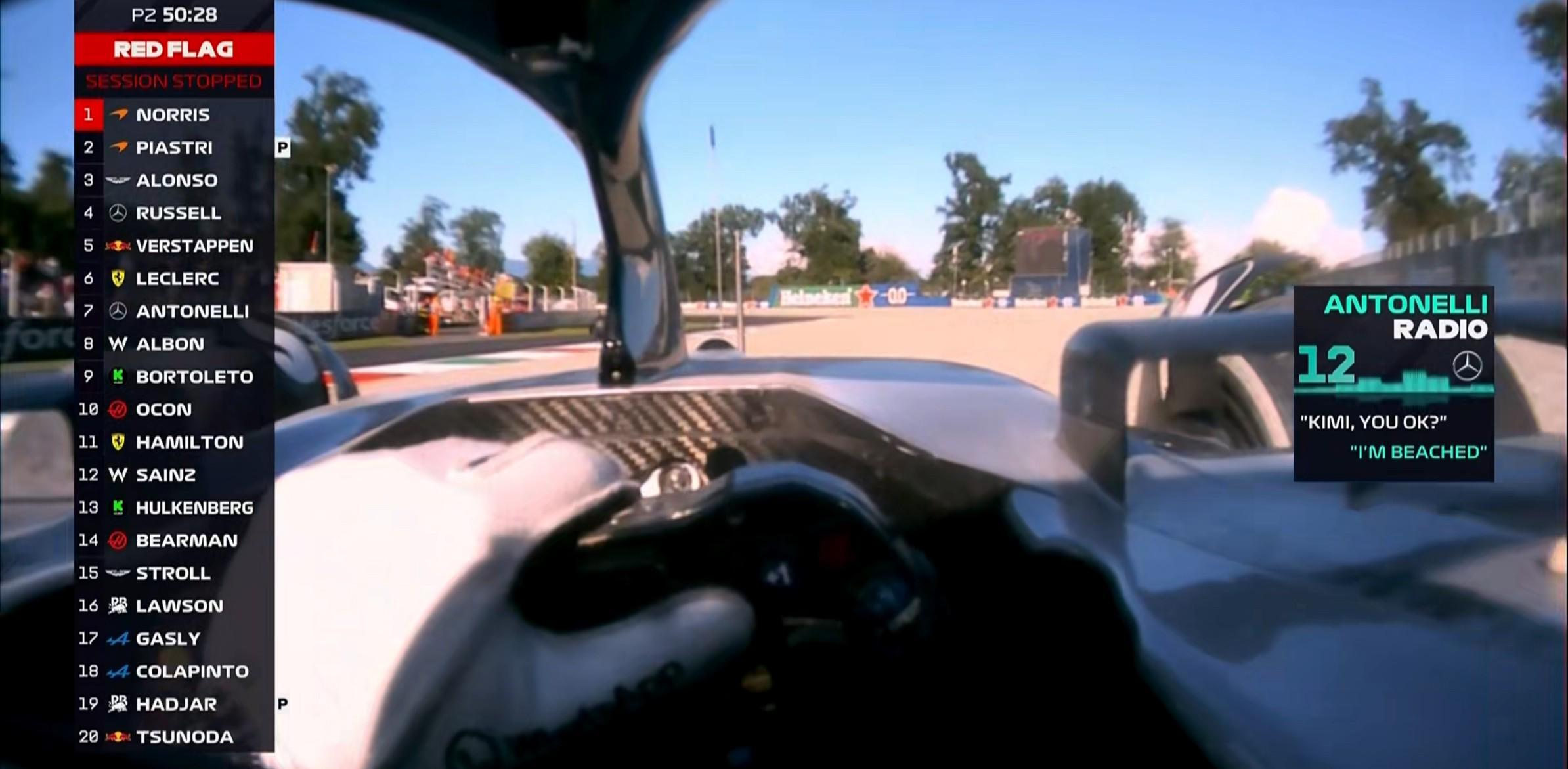 安东内利向车队致歉,这是他连续第二年在自己的主场陷入砂石地,去年他驾驶拉塞尔的赛车迎来F1首秀,但在一练于帕拉波利卡弯上墙,导致赛车撞毁!